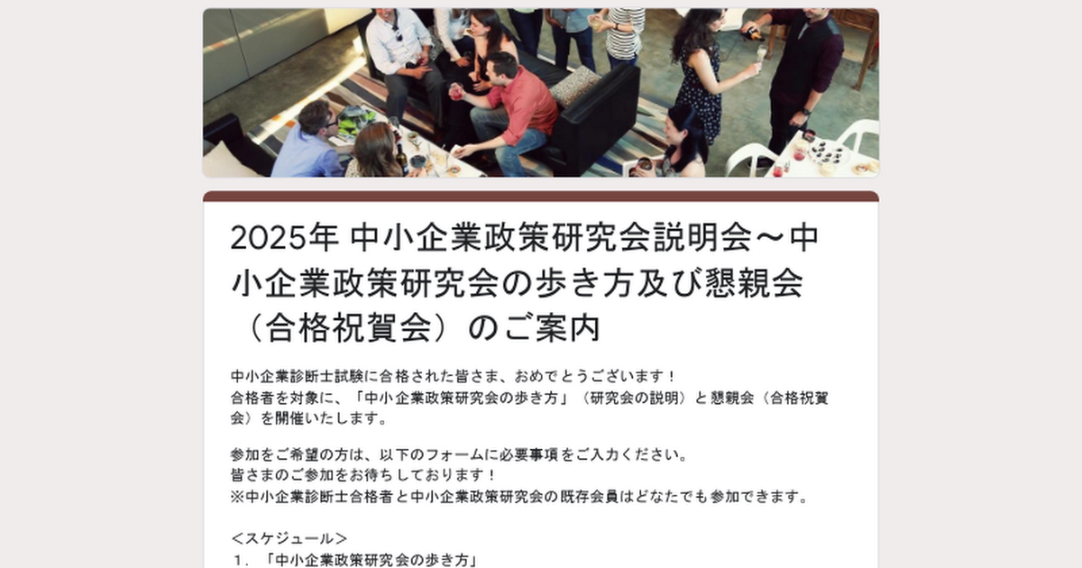 2025年 中小企業政策研究会説明会~中小企業政策研究会の歩き方及び懇親会(合格祝賀会)のご案内
